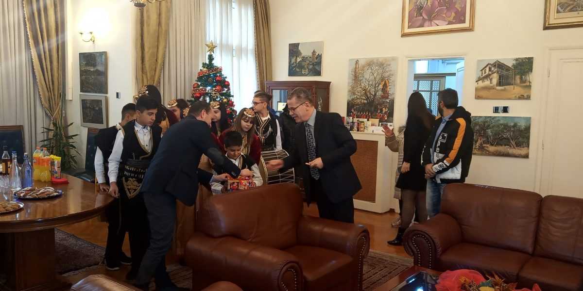 Χριστουγεννιάτικες μελωδίες, κάλαντα και ευχές πλημμύρισε το Δημαρχείο Κοζάνης, σήμερα, παραμονή Χριστουγέννων. Ο Δήμαρχος Κοζάνης, Λάζαρος Μαλούτας, υποδέχθηκε στο γραφείο του μπάντες και πολιτιστικούς συλλόγους της περιοχής, με την φιλαρμονική του Δήμου Κοζάνης «Πανδώρα», όπως κάθε χρόνο, να κάνει την αρχή.