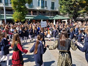 Με τη λήξη της παρέλασης, μαθήτριες και μαθητές του Δήμου μας, χόρεψαν παραδοσιακούς χορούς στην πλατεία Νίκης, αποσπώντας το θερμό χειροκρότημα των εκατοντάδων παρισταμένων.