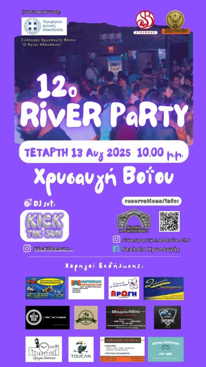 12o River Party στη Χρυσαυγή Βοϊου στις 13 Αυγούστου
