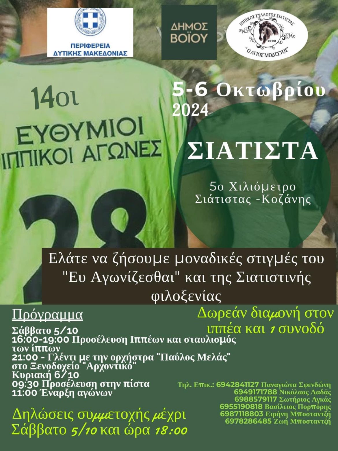 14οι Ευθύμιοι Ιππικοί Αγώνες στη Σιάτιστα, από τον Ιππικό Αθλητικό Πολιτιστικό Σύλλογο Σιάτιστας «Ο Άγιος Μόδεστος».