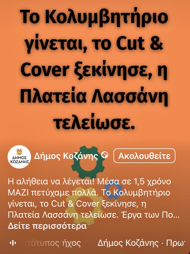 Είναι προφανές ότι έτσι ακριβώς, με την ίδια προσπάθεια οικειοποίησης, θα συνεχίσει : με το μεγάλο έργο του ΣΔΙΤ, την ενεργειακή κοινότητα, τα νέα κοιμητήρια, τους χαρακτηρισμούς ως ΚΧ περιοχών του κέντρου, τις χρηματοδοτήσεις που εξασφαλίσαμε από τον 3ο πυλώνα της Δίκαιης Αναπτυξιακής Μετάβασης και τόσα άλλα έργα που τους κληροδοτήσαμε με απολύτως εξασφαλισμένες χρηματοδοτήσεις ή εντελώς ώριμα.