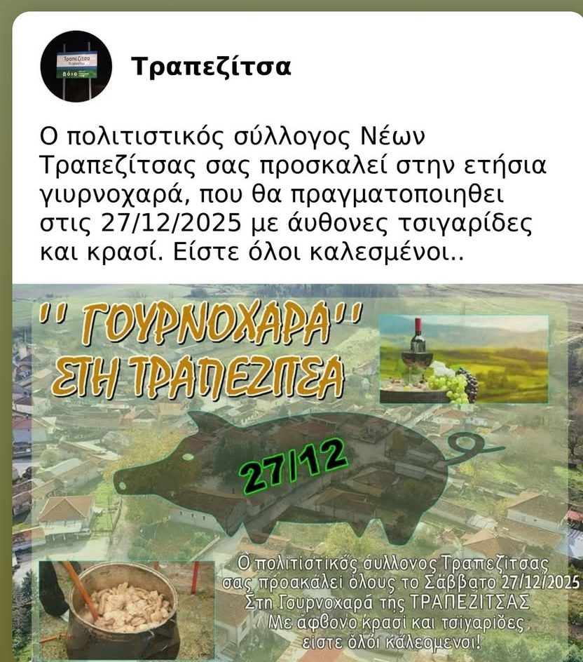 Γουρνοχαρά στην Τραπεζίτσα με άφθονες τσιγαρίδες και κρασί