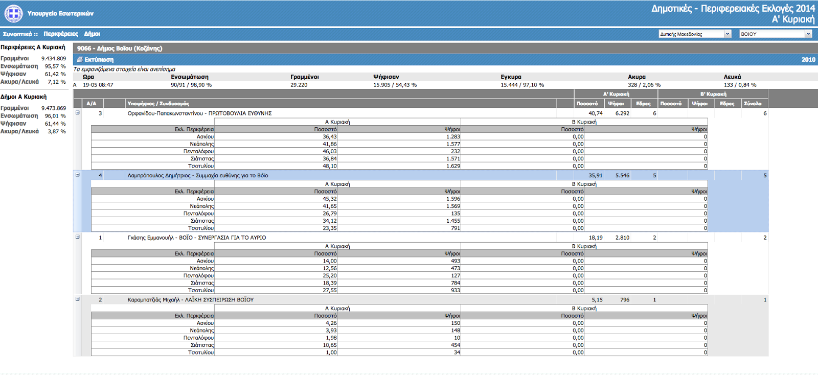 Σε 5 επι συνόλου 5 Εκλ. Τμημάτων (100,00%)