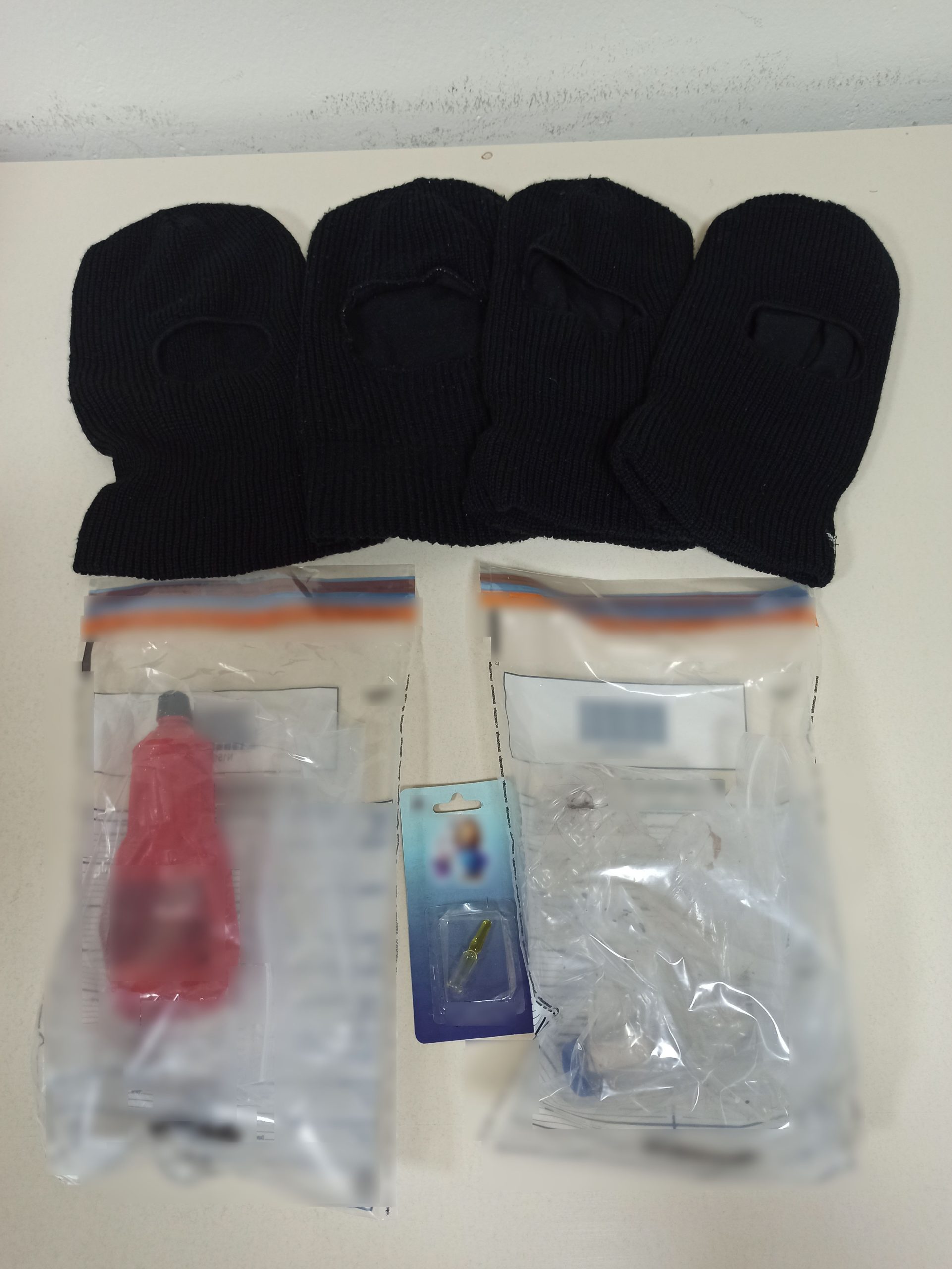 Από την έρευνα των ανωτέρω αστυνομικών, διαπιστώθηκαν οι κινήσεις των προαναφερόμενων ημεδαπών πριν και μετά την τέλεση της πράξης τους, ενώ στην κατοχή τους βρέθηκαν και κατασχέθηκαν -4 κουκούλες τύπου full face που φορούσαν οι ανήλικοι κατά την τέλεση της πράξης, καθώς και -1- αμπούλα περιέχουσα δύσοσμο υγρό.
