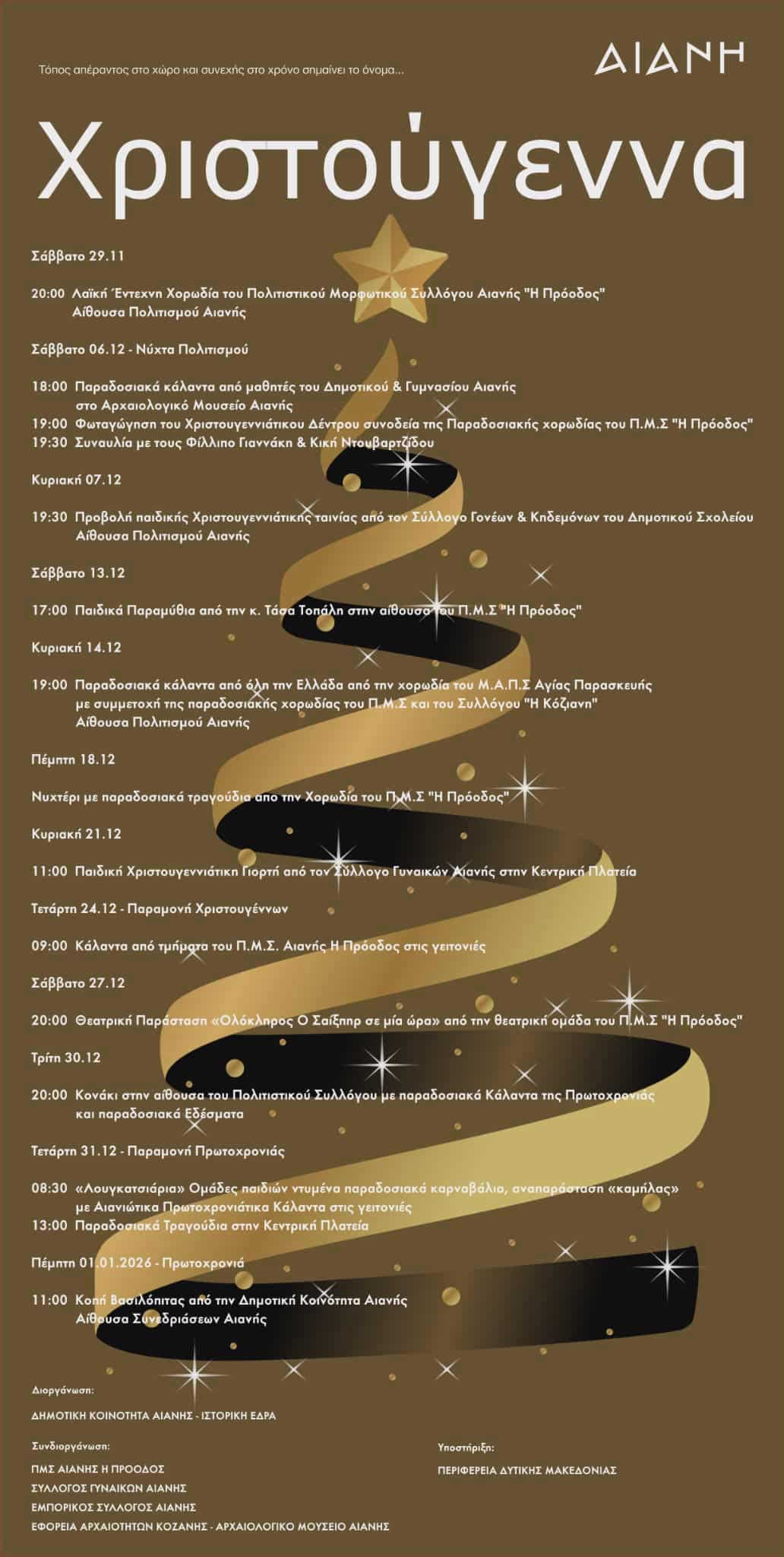 Αιανή – Πλημμύρα Γιορτών & Εκδηλώσεων έως την Πρωτοχρονιά