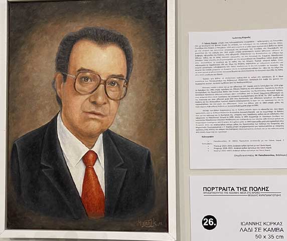 Ο κ. Κορκάς, γνωστός για τη δράση και τη συμβολή του στην κοινωνία, τοπική αυτοδιοίκηση και στα κοινά, αποτέλεσε για δεκαετίες ένα πρόσωπο αναφοράς, με ήθος, συνέπεια και αφοσίωση στο κοινωνικό σύνολο. Το πορτρέτο του, φιλοτεχνημένο από τον καλλιτέχνη Μιχάλη Καραπαναγιωτίδη με λάδι σε καμβά (διαστάσεων 50×35 εκ.), εκτίθεται στην ενότητα «Προσωπογραφίες της Κοζάνης μέσα από τον χρόνο», στο πλαίσιο της έκθεσης.