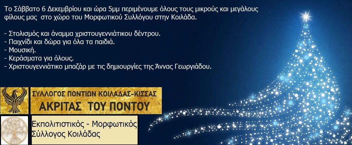 Άναμμα Χριστουγεννιάτικου Δέντρου στην Κοιλάδα το Σάββατο 6 Δεκεμβρίου