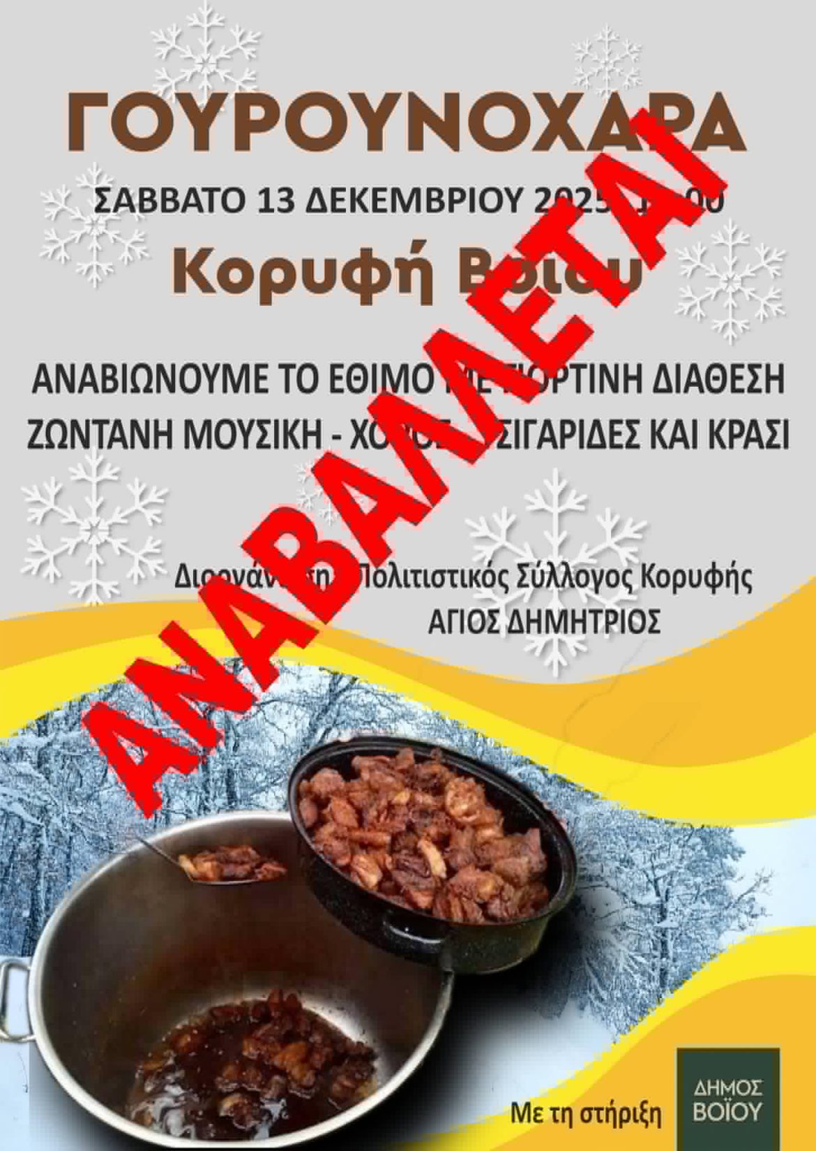 Αναβάλλεται η προγραμματισμένη γουρνοχαρά στην Κορυφή Βοϊου