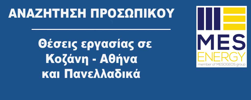 ΑΝΑΖΗΤΗΣΗ ΠΡΟΣΩΠΙΚΟΥ *Θέσεις Εργασίας σε Αθήνα, Κοζάνη και Πανελλαδικά από την MES Energy