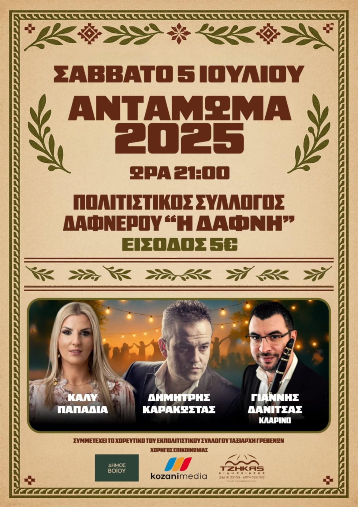 Αντάμωμα 2025 στη Δάφνη Βοΐου Σάββατο 5 Ιουλίου