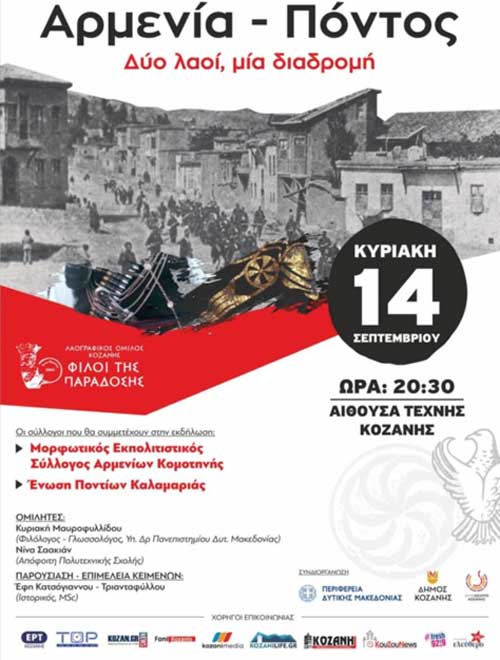 “Αρμενία – Πόντος, Δύο λαοί, μία διαδρομή.” Εκδήλωση του Λαογραφικού Ομίλου Κοζάνης “Φίλοι της Παράδοσης”, την Κυριακή 14 Σεπτεμβρίου