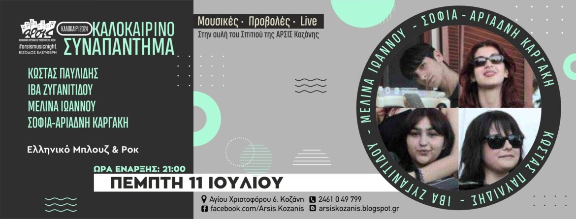 ΑΡΣΙΣ: Καλοκαιρινό συναπάντημα – live Κώστας Παυλίδης, Ίβα Ζυγανιτίδου, Μελίνα Ιωάννου, Σοφία-Αριάδνη Καργάκη
