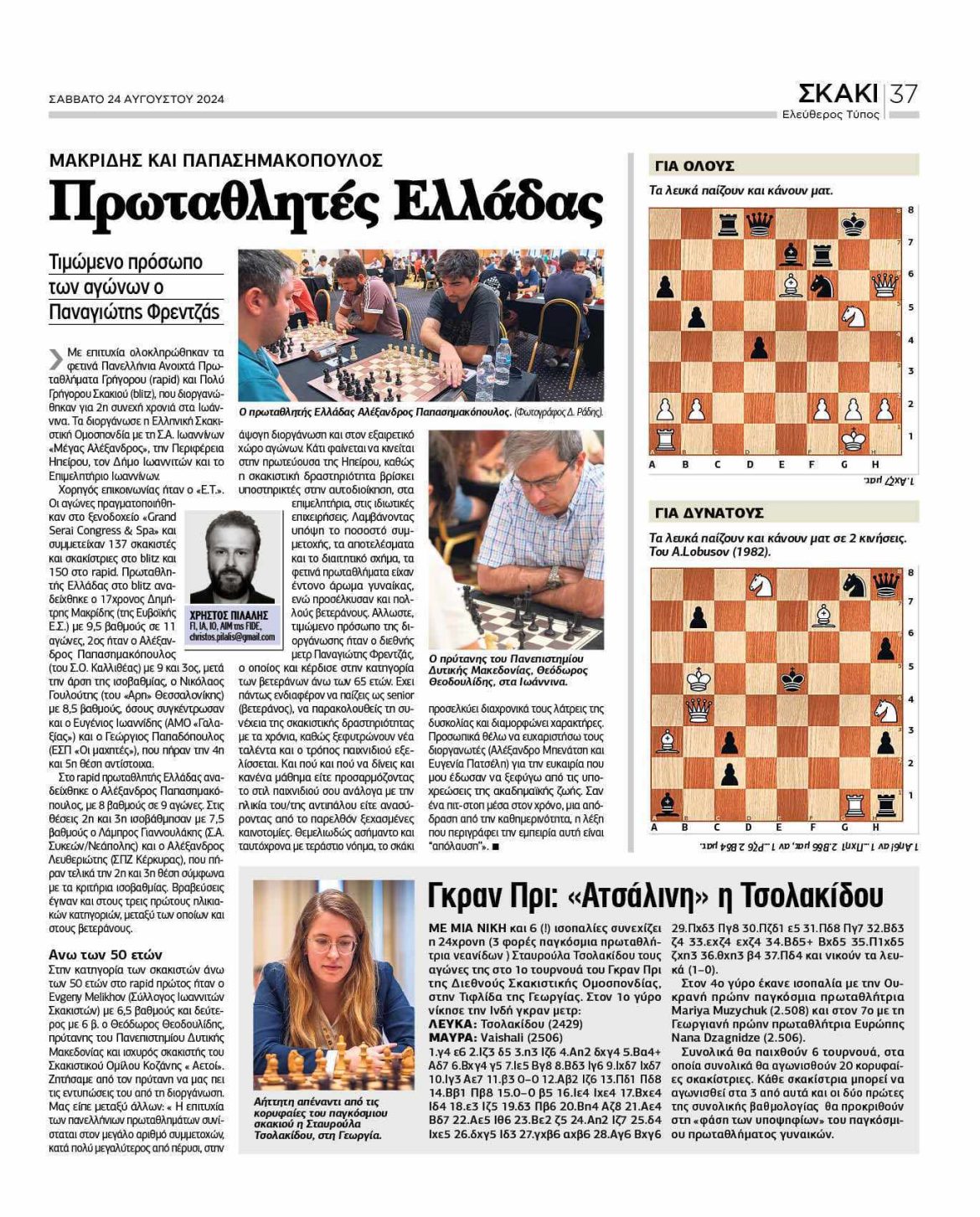 Ευχαριστώ τον Χρήστο Πιλάλη για την προβολή της συμμετοχής μου στο Πανελλήνιο Ανοιχτό Πρωτάθλημα Γρήγορου Σκακιού (ασημένιο μετάλλιο στην ηλικιακή κατηγορία 50+). Σαν ένα πιτ-στοπ μέσα στον χρόνο, μια απόδραση από την καθημερινότητα, μια απολαυστική εμπειρία.