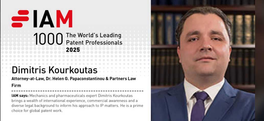 Η διάκριση αυτή επιβεβαιώνει για ακόμη μία φορά το υψηλό επίπεδο επαγγελματισμού και την εξειδίκευση του Δημήτρη Κουρκούτα στον ιδιαίτερα απαιτητικό και διεθνώς ανταγωνιστικό χώρο της προστασίας πατεντών και πνευματικών δικαιωμάτων.
