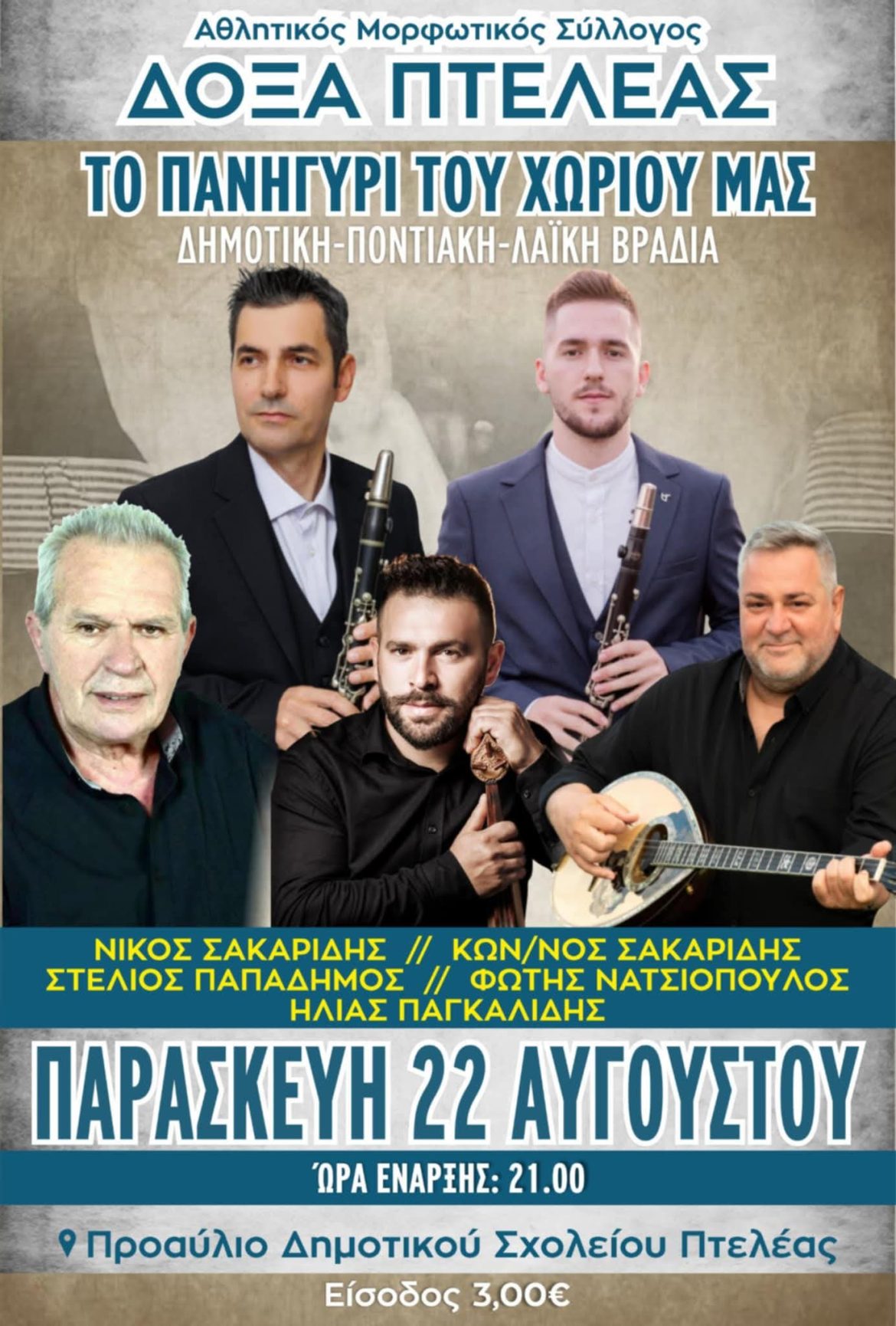 Δημοτική – Ποντιακή – Λαϊκή βραδιά στην Πτελέα την Παρασκευή 22 Αυγούστου