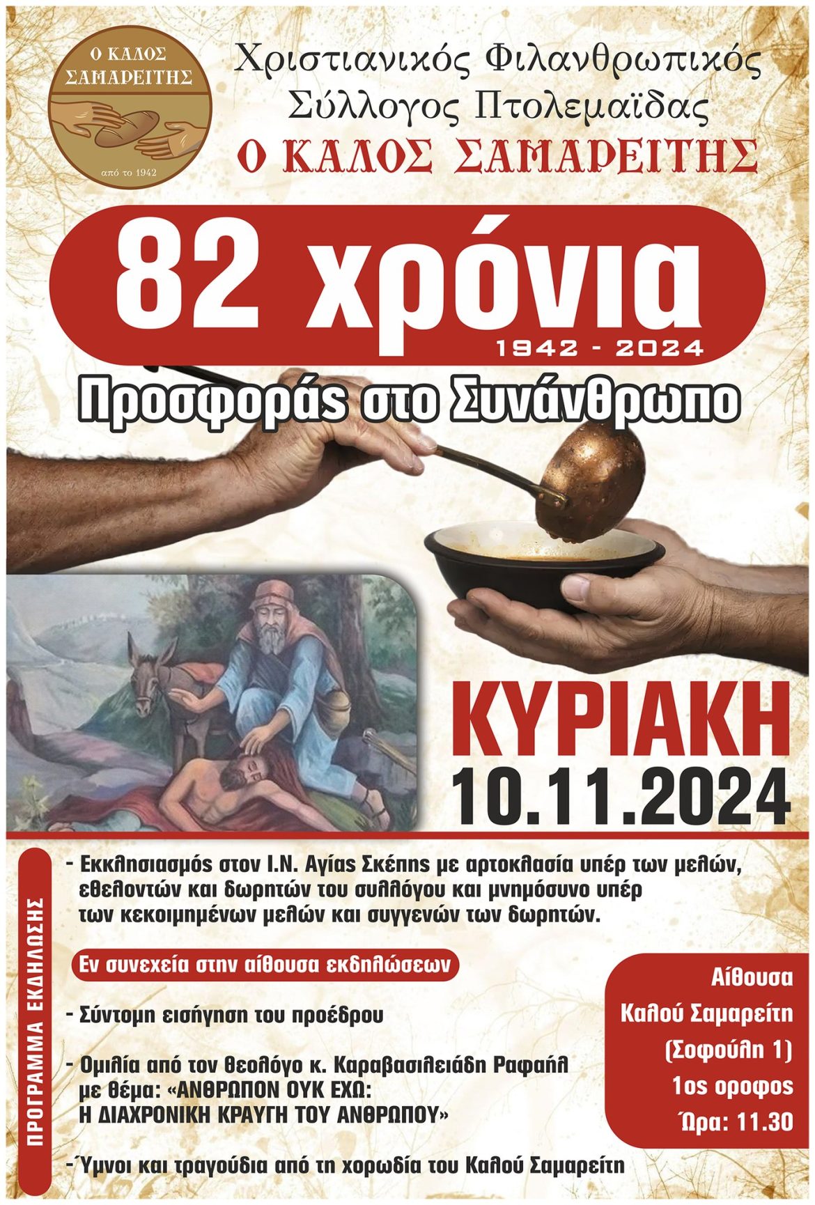 Εκδήλωση για τα 82 χρόνια προσφοράς στο συνάνθρωπο από τον σύλλογο “Καλός Σαμαρείτης”
