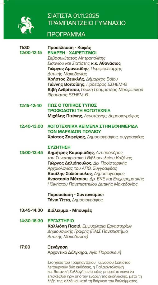 Εκδήλωση για τον Τύπο και την Λογοτεχνία στην Σιάτιστα 1 Νοεμβρίου στο Τραμπάντσειο Γυμνάσιο