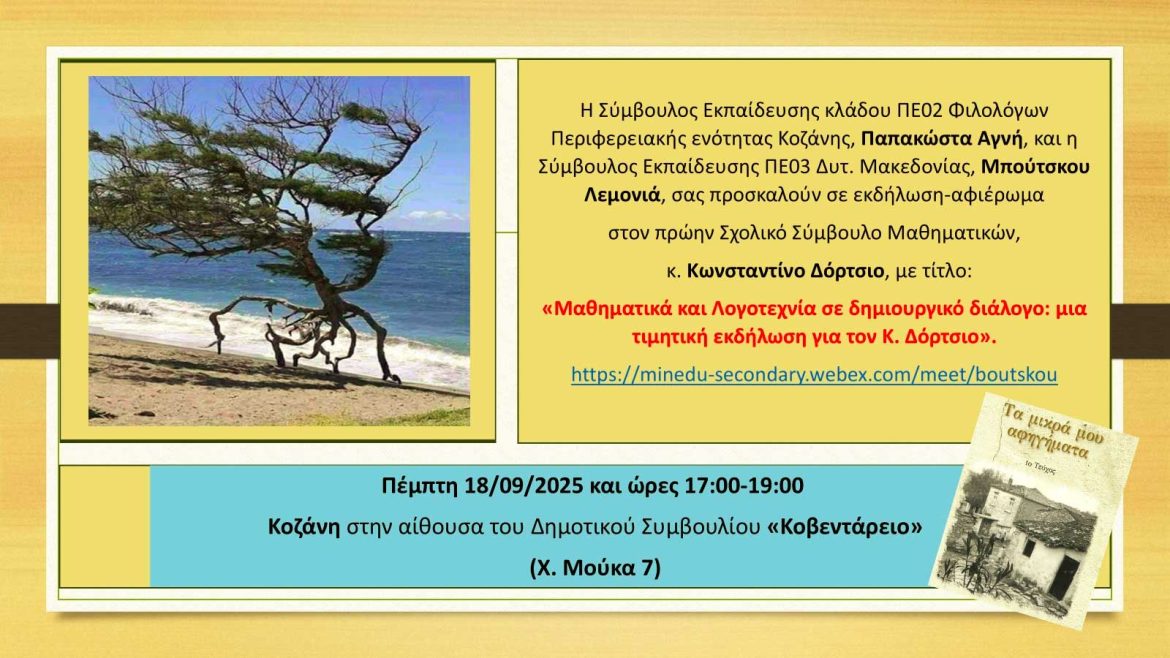 Εκδήλωση στην Κοζάνη, προς τιμήν του Έλληνα Μαθηματικού, π. Λυκειάρχη, π. Σχολικού Συμβούλου Μαθηματικών Δυτ. Μακεδονίας, Κώστα Δόρτσιου