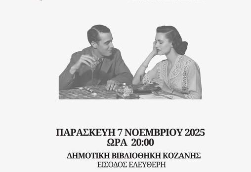 Παρασκευή 7 Νοεμβρίου 2025 και ώρα 8:00 μ.μ. στην Δημοτική Βιβλιοθήκη Κοζάνης.