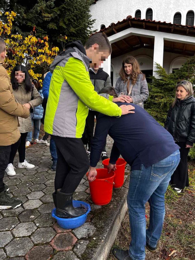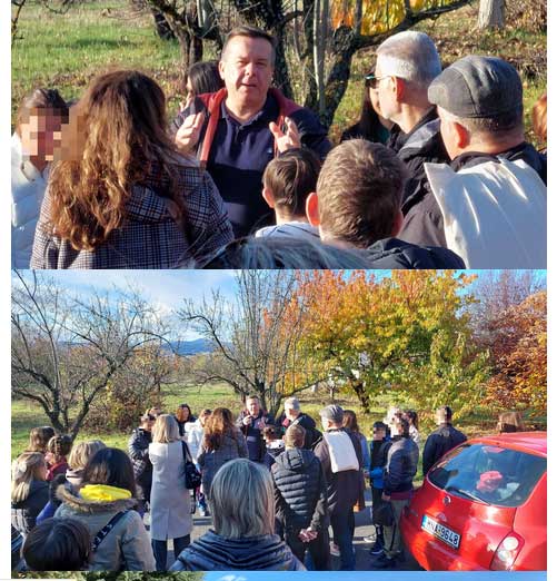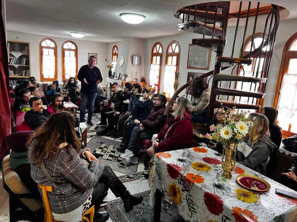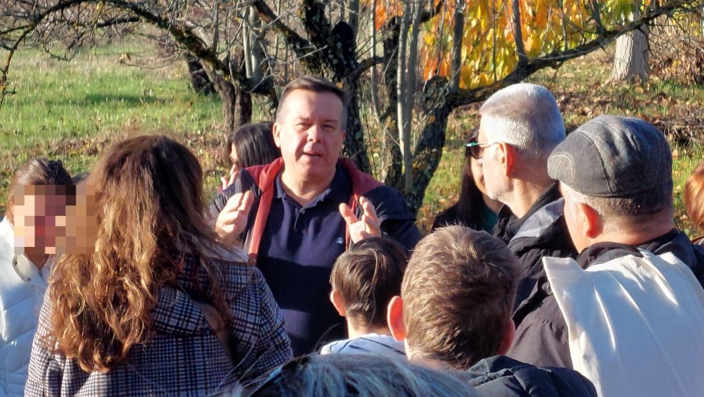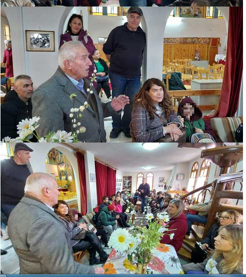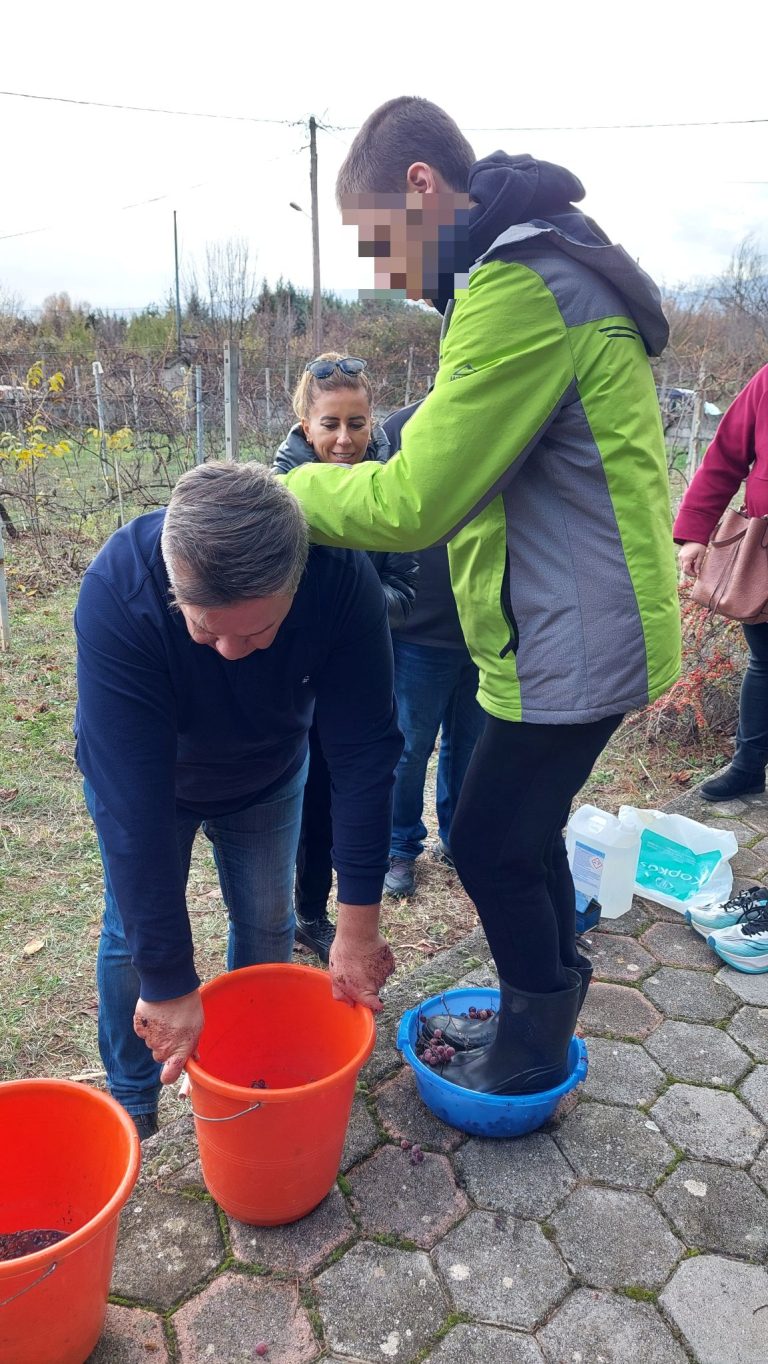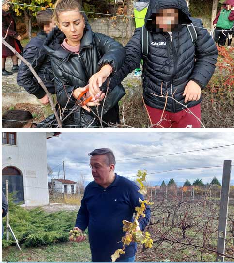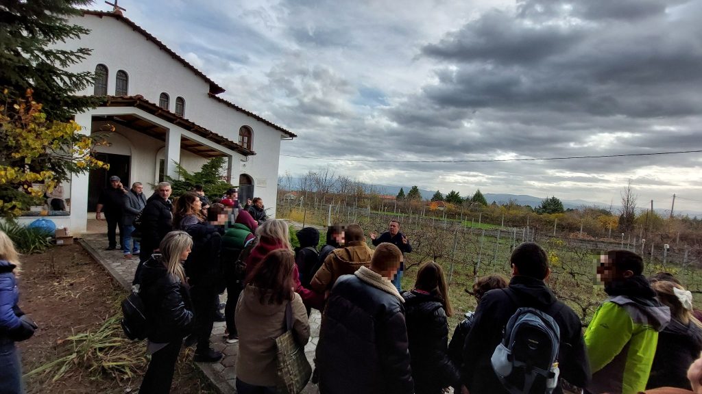 Ο Γεωπόνος – Οινολόγος κ. Ευθύμης Μπατιάνης, υπάλληλος της Δ/νσης Αγροτικής Οικονομίας της Περιφερειακής Ενότητας Κοζάνης, ο οποίος έχει την ευγενή καλοσύνη να φροντίζει τον αμπελώνα του ναού, δίδαξε στα παιδιά βασικά στοιχεία περί αμπελοκαλλιέργειας και σταδίων οινοποίησης με βιωματικό τρόπο. Συγκεκριμένα έδωσε στους μαθητές / -τριες την ευκαιρία να κλαδέψουν κάποια κλίματα αλλά και να πατήσουν με τα πόδια τους σταφύλια. Τέλος, όλο το σχολείο πήγε στην αίθουσα εκδηλώσεων του Ναού, όπου ξεκουράστηκαν κοντά στο τζάκι και ο κος Μπατιάνης τους ανέφερε ιστορικά στοιχεία του Ναού και του συλλόγου. Ευχάριστη έκπληξη αποτέλεσε και η παρουσία στον Ναό ενός παλιού καθηγητή Φιλολόγου του 1ου Γυμνασίου Κοζάνης, του κου Γεωργίου Παρχαρίδη, ο οποίος σήμερα είναι 89 ετών. Ο κύριος Παρχαρίδης γνωρίστηκε με τους εκπαιδευτικούς και τους μαθητές / -τριες του σχολείου μας και πέρασε χρόνο μαζί μας. Ήταν μια ιδιαίτερα ευχάριστη ημέρα καθώς και εποικοδομητική.