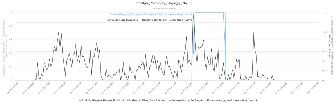 Ενεργοποίηση αισθητήρα ροής στο ρέμα Σιόποτο μετά το σημαντικό επεισόδιο βροχόπτωσης στις 21 Νοεμβρίου 2025
