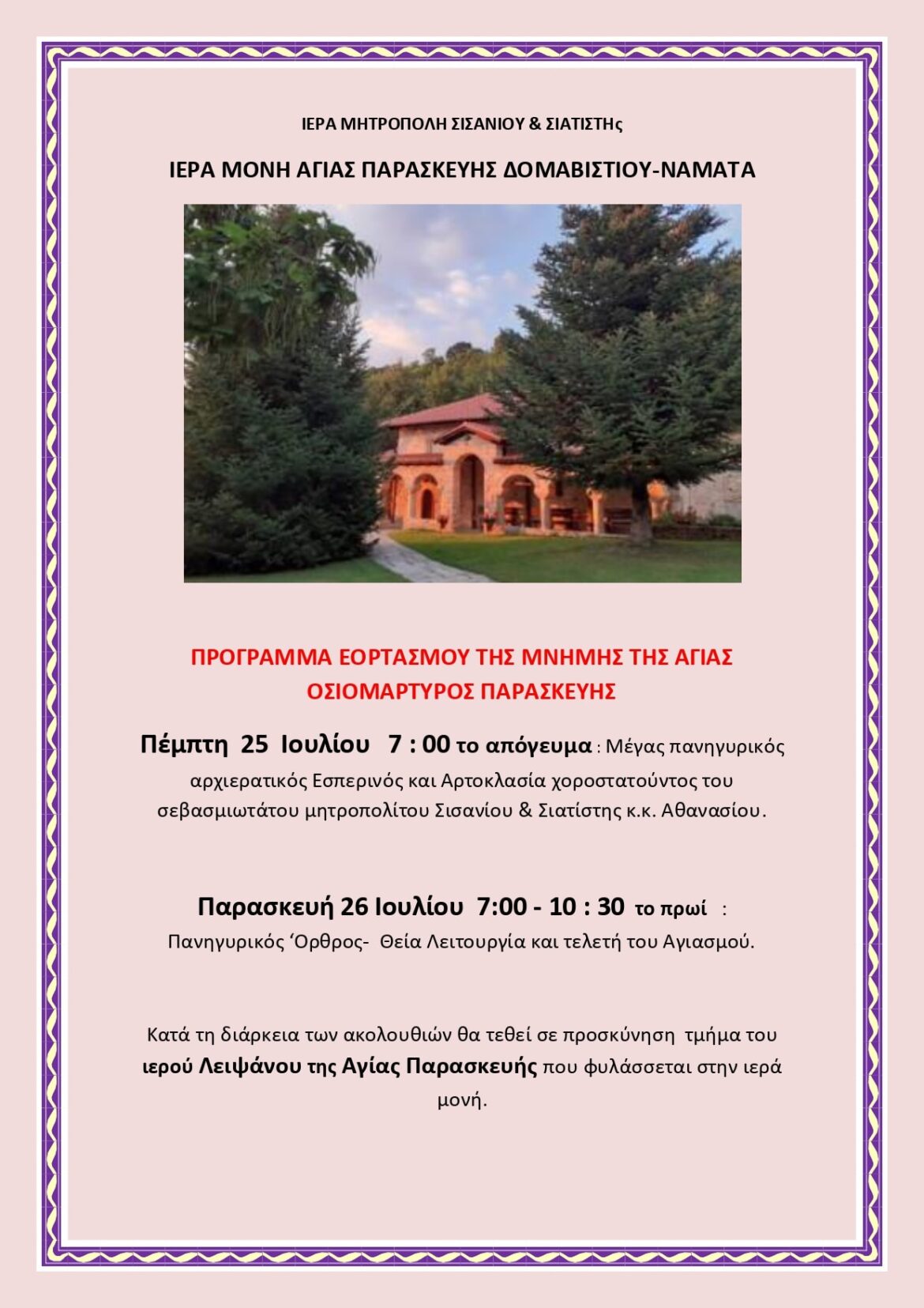 Εορτασμός της μνήμης της Αγίας Παρασκευής στα Νάματα. Τμήμα λειψάνου της Αγίας σε προσκύνηση