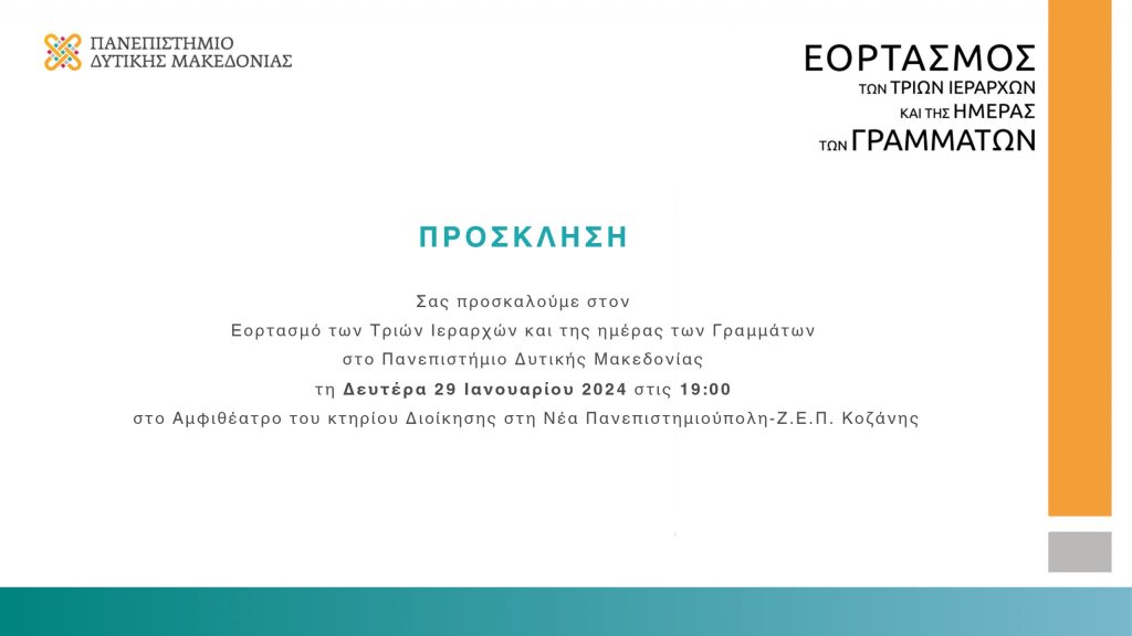 Εορτασμός των Τριών Ιεραρχών και της Ημέρας των Γραμμάτων στο Πανεπιστήμιο Δυτικής Μακεδονίας τη Δευτέρα 29/1
