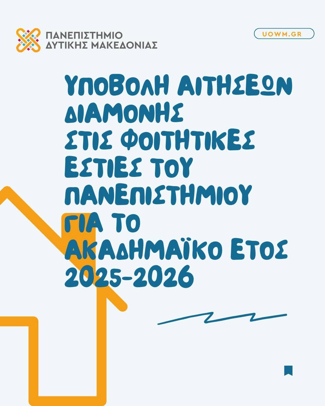 Έως 28 Σεπτεμβρίου οι αιτήσεις για τις Φοιτητικές Εστίες του ΠΔΜ