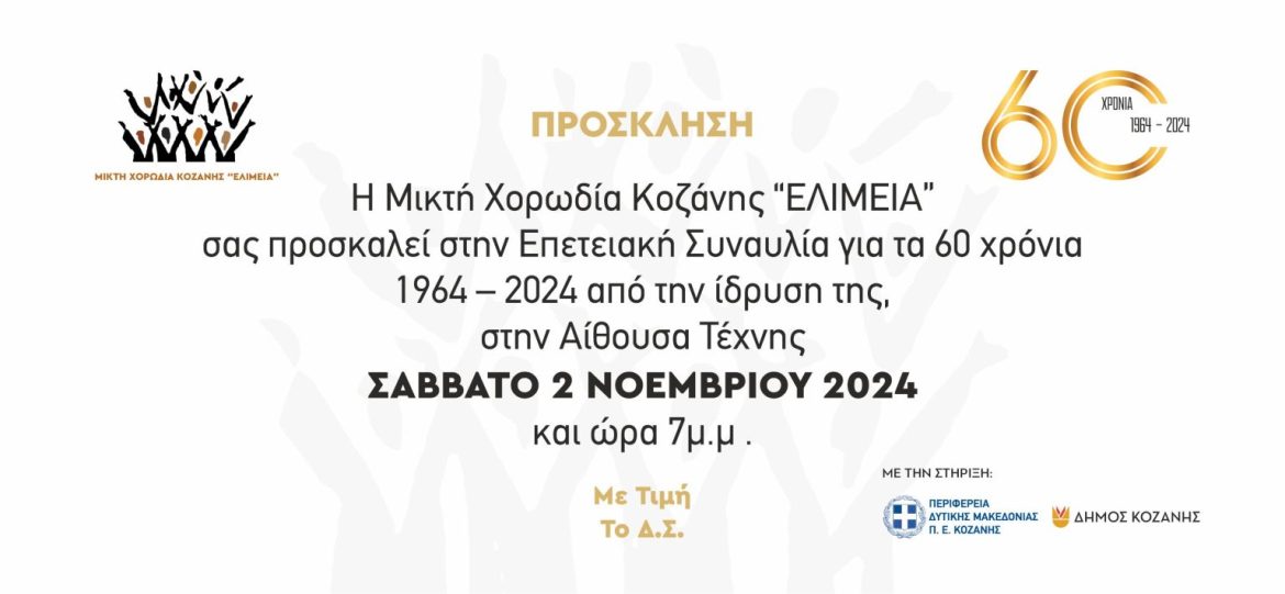 Επετειακή συναυλία για τα 60 χρόνια της Μικτής Χορωδίας Κοζάνης “ΕΛΙΜΕΙΑ”