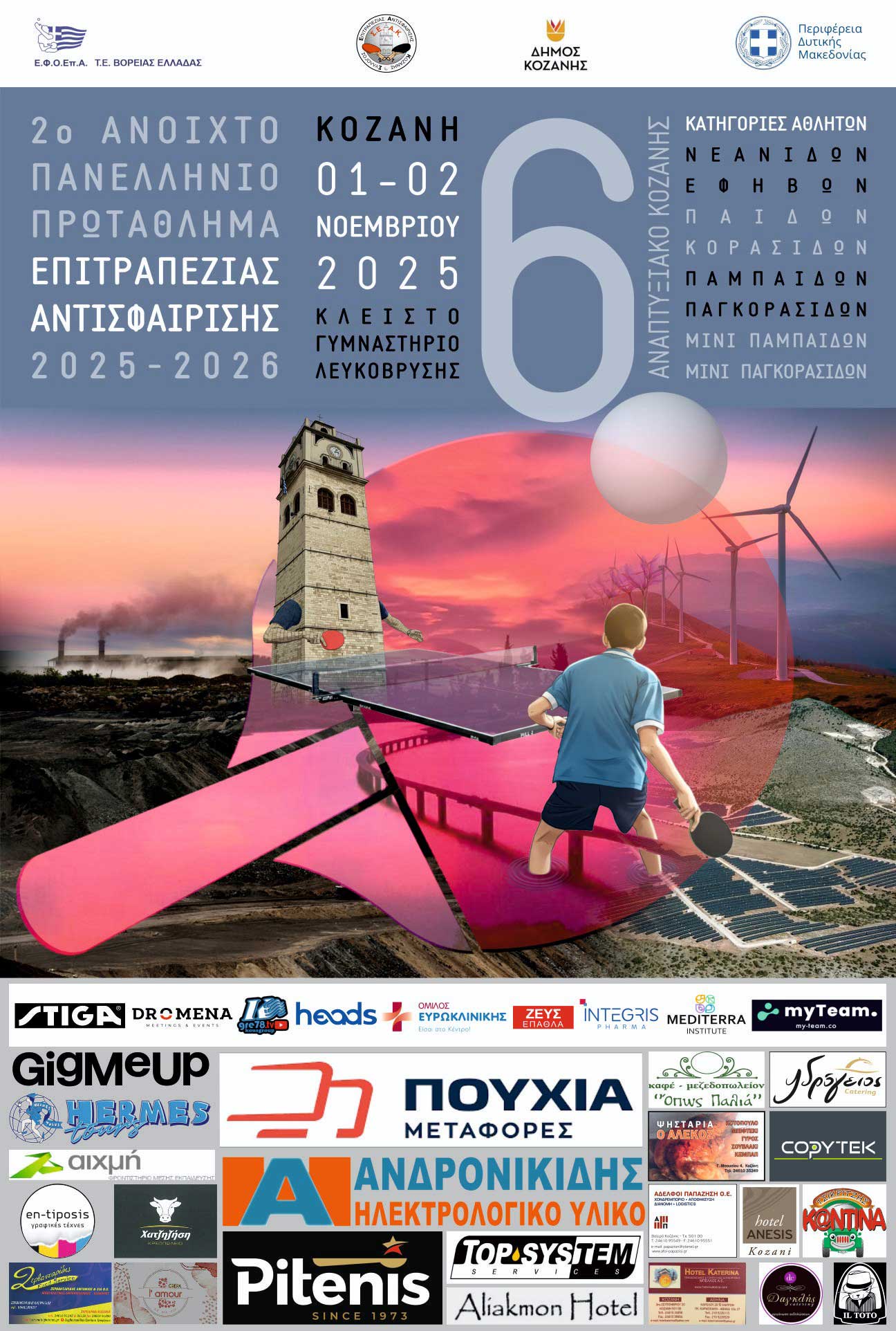 Το 6ο όπεν πανελλαδικής εμβέλειας της Κοζάνης θα έχει και φέτος σημαντική στήριξη από εταιρείες. Συνολικά 22 χορηγοί βοηθούν την προσπάθεια και είναι οι εξής: