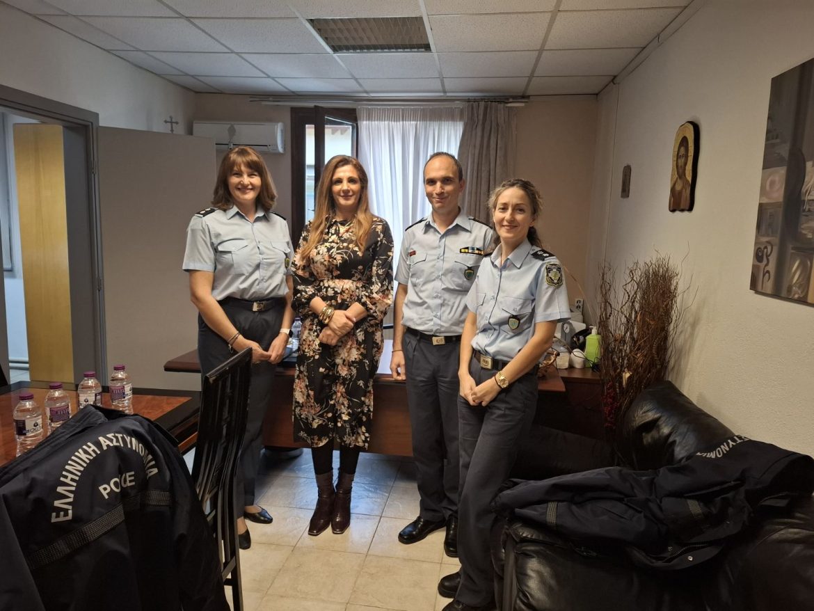 Ο Διοικητής του Αστυνομικού Τμήματος Φλώρινας, Α/Υ΄ κ. ΔΟΥΚΑΣ Αθανάσιος, η Επικεφαλής του Γραφείου Αντιμετώπισης Ενδοοικογενειακής Βίας Φλώρινας, Υ/Α΄ κα. ΘΕΟΦΑΝΙΔΟΥ Αθηνά, και η Αναπληρώτρια Επικεφαλής, Υ/Α΄ κα. ΚΛΕΙΣΙΑΡΗ Μαρίνα, πραγματοποίησαν εθιμοτυπική επίσκεψη στη νέα Διοικήτρια του Γενικού Νοσοκομείου Φλώρινας «Ελένης. Δημητρίου», κα. ΤΑΡΑΤΣΙΔΟΥ Παναγιώτα, με αφορμή την ανάληψη των νέων καθηκόντων της, απευθύνοντάς της θερμές ευχές για καλή και παραγωγική θητεία.