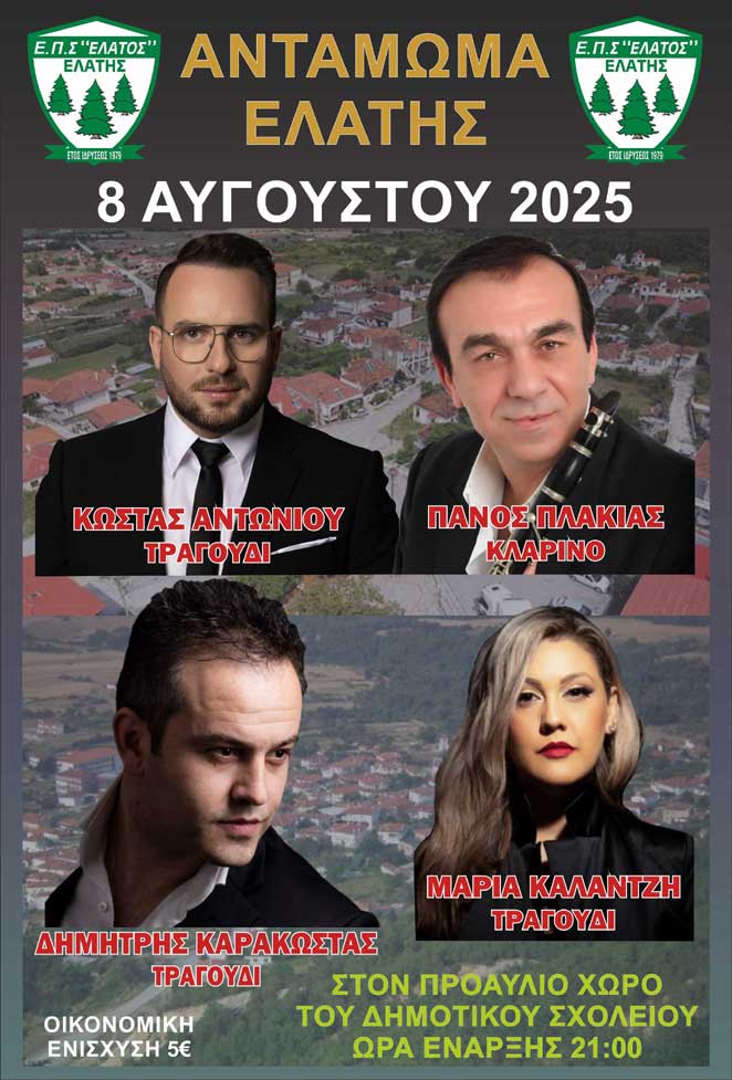 Ετήσιο ΑΝΤΑΜΩΜΑ ΕΛΑΤΗΣ την ΠΑΡΑΣΚΕΥΗ 8 ΑΥΓΟΥΣΤΟΥ στον προαύλιο χώρο του δημοτικού σχολείου