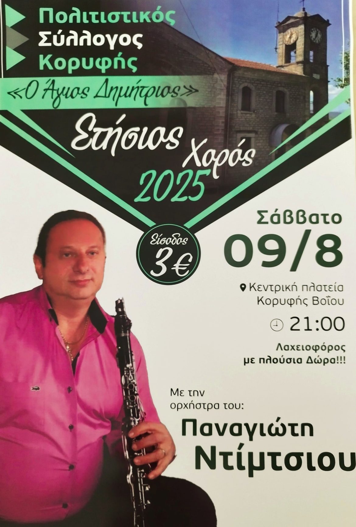 Ετήσιος Χορός στην πλατεία της Κορυφής Βοΐου το Σάββατο 9 Αυγούστου
