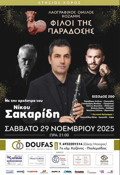 Ετήσιος χορός του Λαογραφικού Ομίλου Κοζάνης “Φίλοι της Παράδοσης”, Σάββατο 29 Νοεμβρίου