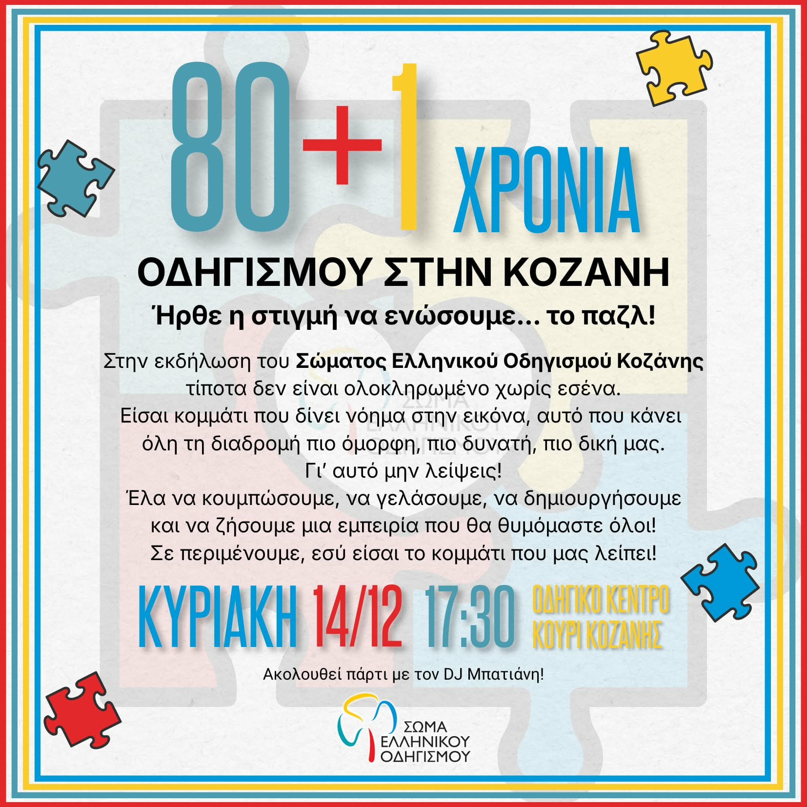 Φέτος, το Τοπικό Τμήμα Κοζάνης γιορτάζει 80 χρόνια Οδηγισμού και σε θέλει ξανά κοντά του