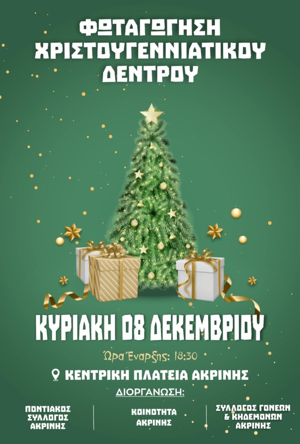 Φωταγώγηση Χριστουγεννιάτικου Δέντρου στην Ακρινή 8 Δεκεμβρίου