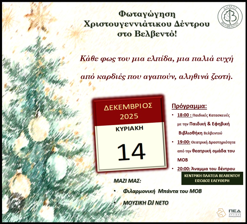 Φωταγώγηση Χριστουγεννιάτικου Δέντρου στο Βελβεντό