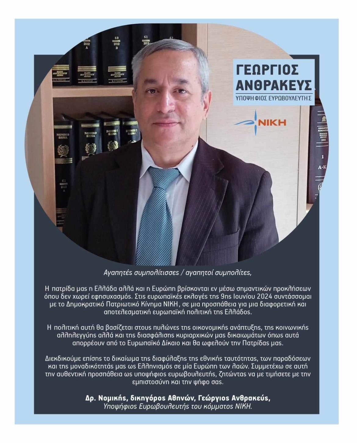 Γεώργιος Ανθρακεύς – υποψήφιος ευρωβουλευτής: “Διεκδικούμε το δικαίωμα της διαφύλαξης της εθνικής ταυτότητας, των παραδόσεων και της μοναδικότητάς μας ως ελληνισμός σε μια Ευρώπη των λαών”