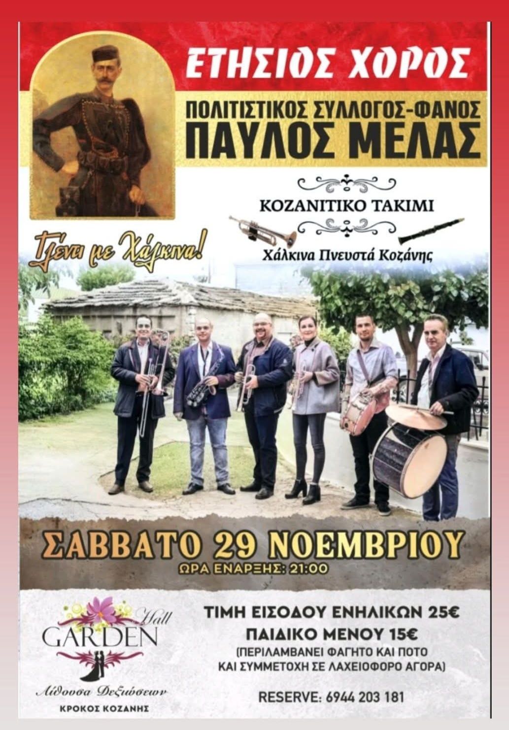 Γλέντι με χάλκινα του Πολιτιστικού Συλλόγου – Φανός ΠΑΥΛΟΣ ΜΕΛΑΣ 29 Νοεμβρίου