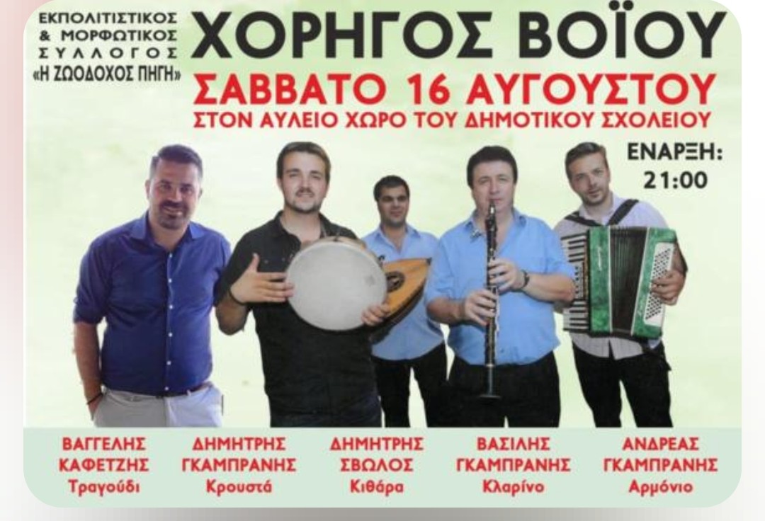 Γλέντι στο Χορηγό Βοΐου το Σάββατο 16 Αυγούστου