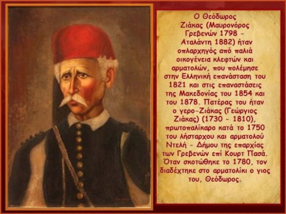 Θεόδωρος Ι. Ζιάκας, ανεψιός και πρωτεξάδελφος του Γιαννούλα. Το Φλεβάρη του 1822 τον συναντούμε επικεφαλής των Γρεβενιωτών πολεμιστών στις μάχες της Νάουσας. Μαζί με τον Καραϊσκάκη έλαβε μέρος στις μάχες στο Μπλάτσι και την Κερασιά Αγράφων τον Ιούνιο του 1822, στο Βραχώρι (Αγρίνιο) εναντίον του Ομέρ Βρυώνη. Στο Μακρύκαμπο κατά του πασά Πράχου Μπριβίστα Στις μάχες της Άμφισσας ( Σάλωνα) κατά του Κεχαγιάμπεη και γύρω από το Μεσολόγγι τον Μάιο του 1825. Στα Σάλωνα κατά του Κιουταχή. Στις μάχες του Χαϊδαρίου τον Μάιο του 1826. Στις μάχες της Δόμβραινας κατά του Μουσταή πασά στις 4 Νοεμβρίου 1826. Στη μάχη της Αράχοβας κατά του Μουσταή πασά στις 18 Νοεμβρίου 1826. Στη μάχη του Διστόμου κατά του Ομέρ πασά της Εύβοιας.
