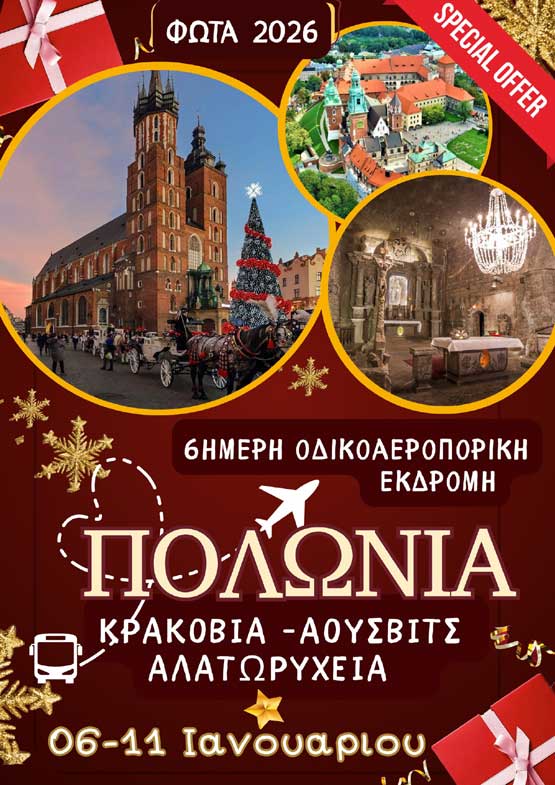 Στις επιλογές του γραφείου περιλαμβάνονται ακόμη εκδρομές στην Πολωνία, στην Αθήνα και σε άλλους προορισμούς.