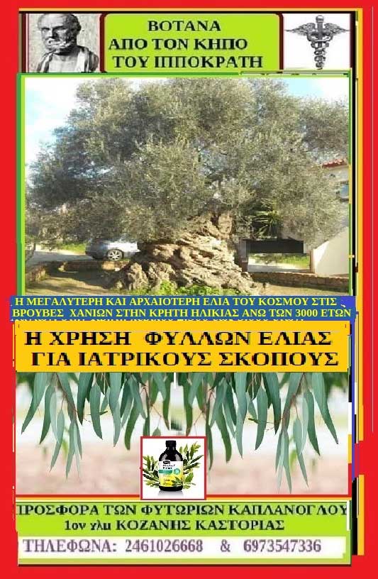 Η ΧΡΗΣΗ ΦΥΛΛΩΝ ΕΛΙΑΣ, ΓΙΑ ΙΑΤΡΙΚΟΥΣ ΣΚΟΠΟΥΣ ΒΟΤΑΝΑ ΑΠΟ ΤΟΝ ΚΗΠΟ ΤΟΥ ΙΠΠΟΚΡΑΤΗ
