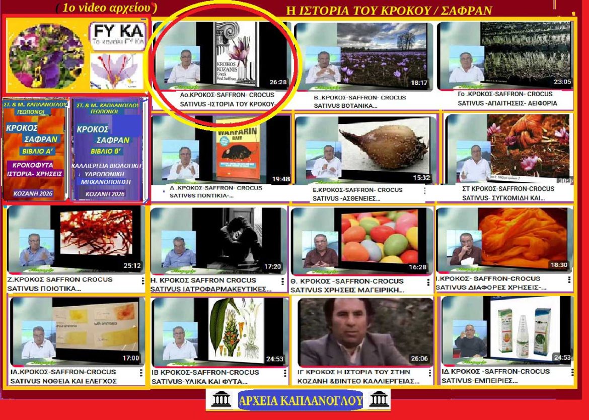 Η σήμερα παρουσιάζουμε το πρώτο μέρος της πρώτης εκπομπής με τον τίτλο : << Ao.ΚΡΟΚΟΣ-SAFFRON- CROCUS SATIVUS -ΙΣΤΟΡΙΑ ΤΟΥ ΚΡΟΚΟΥ- ΑΕΙΦΟΡΙΑ >> και έχει διάρκεια 26,27 λεπτών