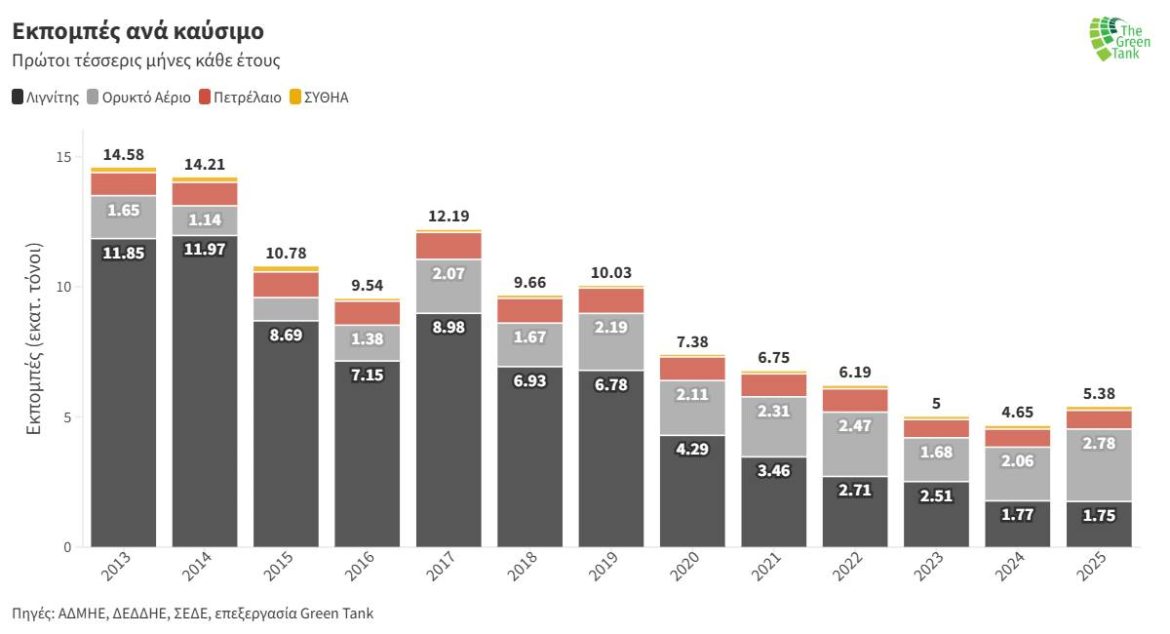 Συνολικά το πρώτο τετράμηνο του 2025 εκπέμφθηκαν 5.38 εκατ. τόνοι από τον τομέα της ηλεκτροπαραγωγής με το #αέριο να ευθύνεται για το 52% αυτών με 2.78 εκατ .τόνους και υψηλό της δεκαετίας.