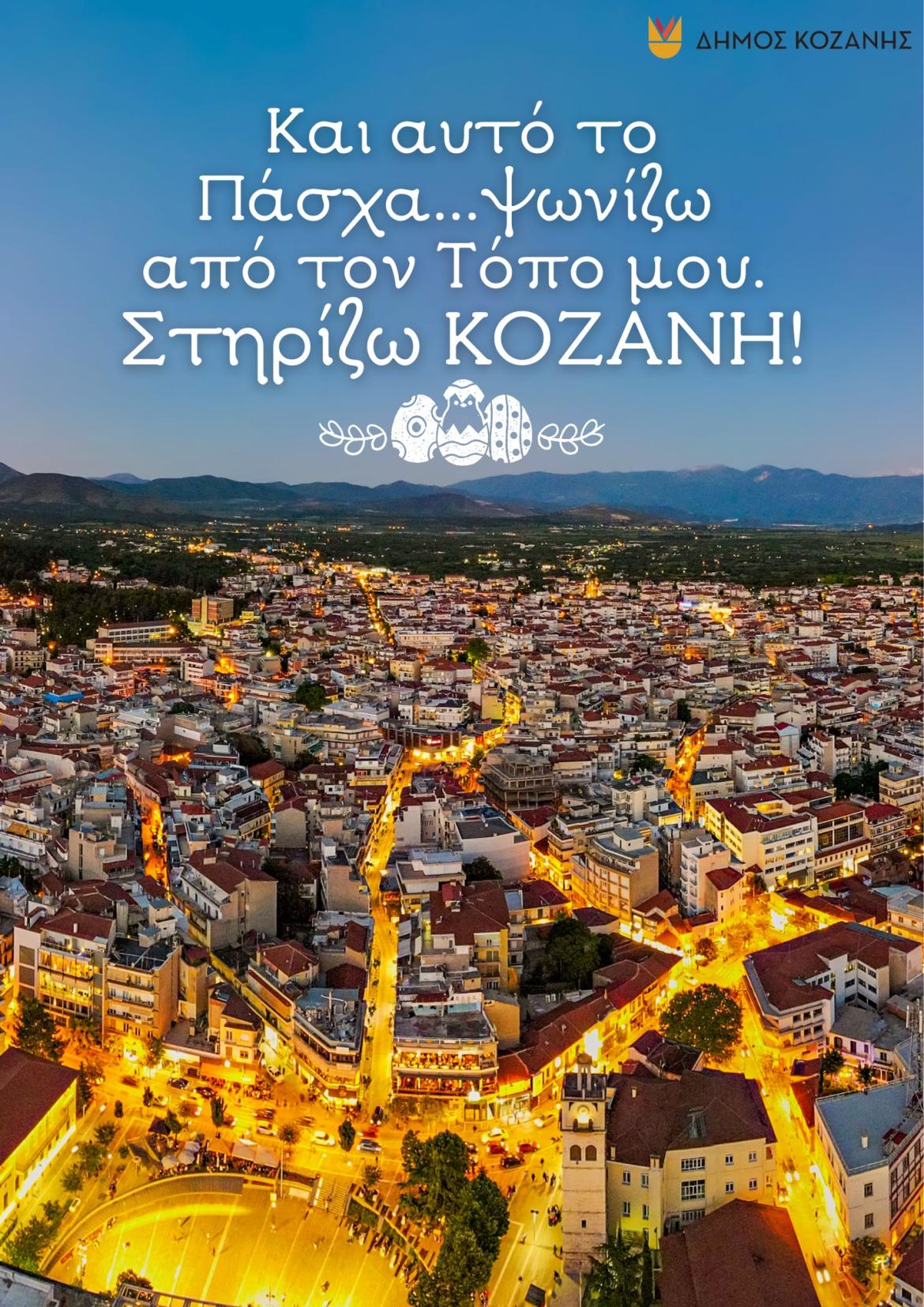 Έχοντας ως κεντρικό σύνθημα «Και αυτό το Πάσχα…ψωνίζω από τον Τόπο μου. Στηρίζω ΚΟΖΑΝΗ!», ο Δήμος Κοζάνης καλεί όλους τους καταναλωτές να εμπιστευθούν και φέτος το Πάσχα, τα καταστήματα και τους παραγωγούς του Δήμου μας, ενισχύοντας στην πράξη την αγορά μας, το εισόδημά μας, τους ανθρώπους μας.