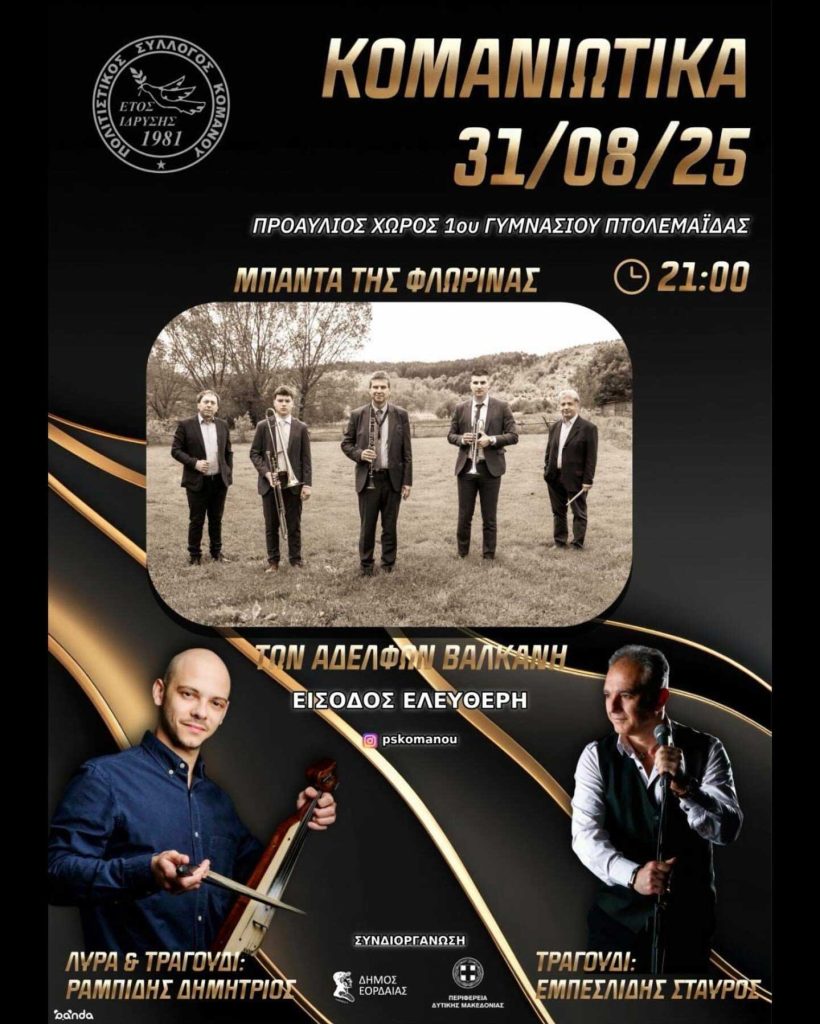 Κομανιώτικα 2025 στις 31 Σεπτεμβρίου με τη μπάντα της Φλώρινας