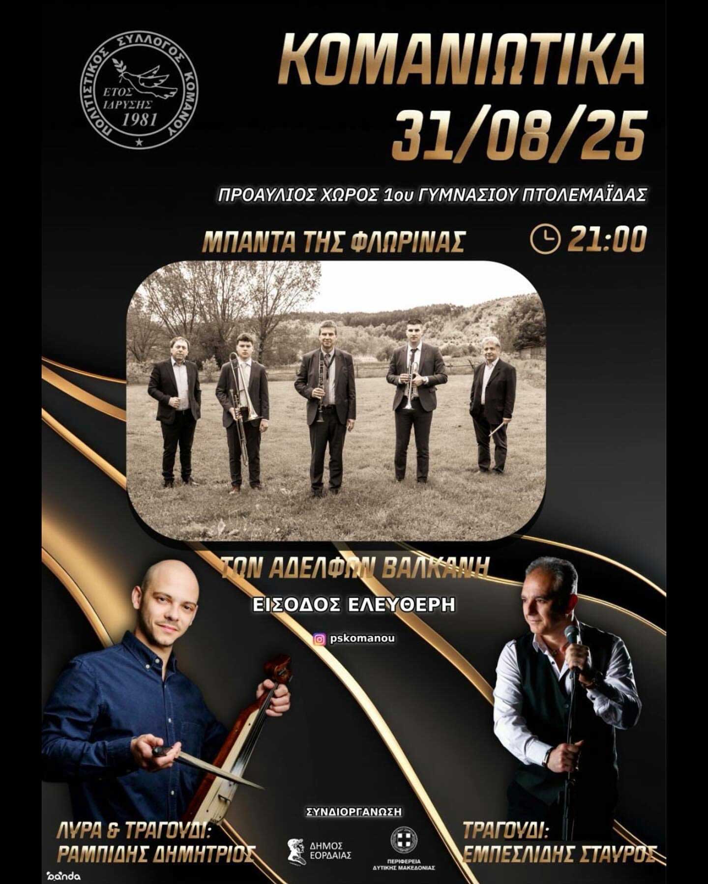 Κομανιώτικα 2025 στις 31 Σεπτεμβρίου με τη μπάντα της Φλώρινας