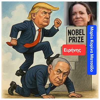 Κι εκεί που ο ΤΡΑΜΠ πετύχαινε την ειρήνευση στη Μέση Ανατολή, κι εκεί που ο ίδιος επιζητούσε το φετινό βραβείο Νόμπελ Ειρήνης (χωρίς να το κρύβει άλλωστε), κι εκεί που όλοι υποψιάζονταν πως τελικά η νορβηγική επιτροπή για το βραβείο Νόμπελ Ειρήνης θα αξιολογούσε θετικά τον τερματισμό ενός διετούς (για πολλούς δεκαετιών) πολέμου στη Μέση Ανατολή (Ισραήλ vs Χαμάς) η έκπληξη ήρθε από τη Βενεζουέλα, αφού το βραβείο τελικά δόθηκε στην Μαρία Κορίνα Ματσάδο.
