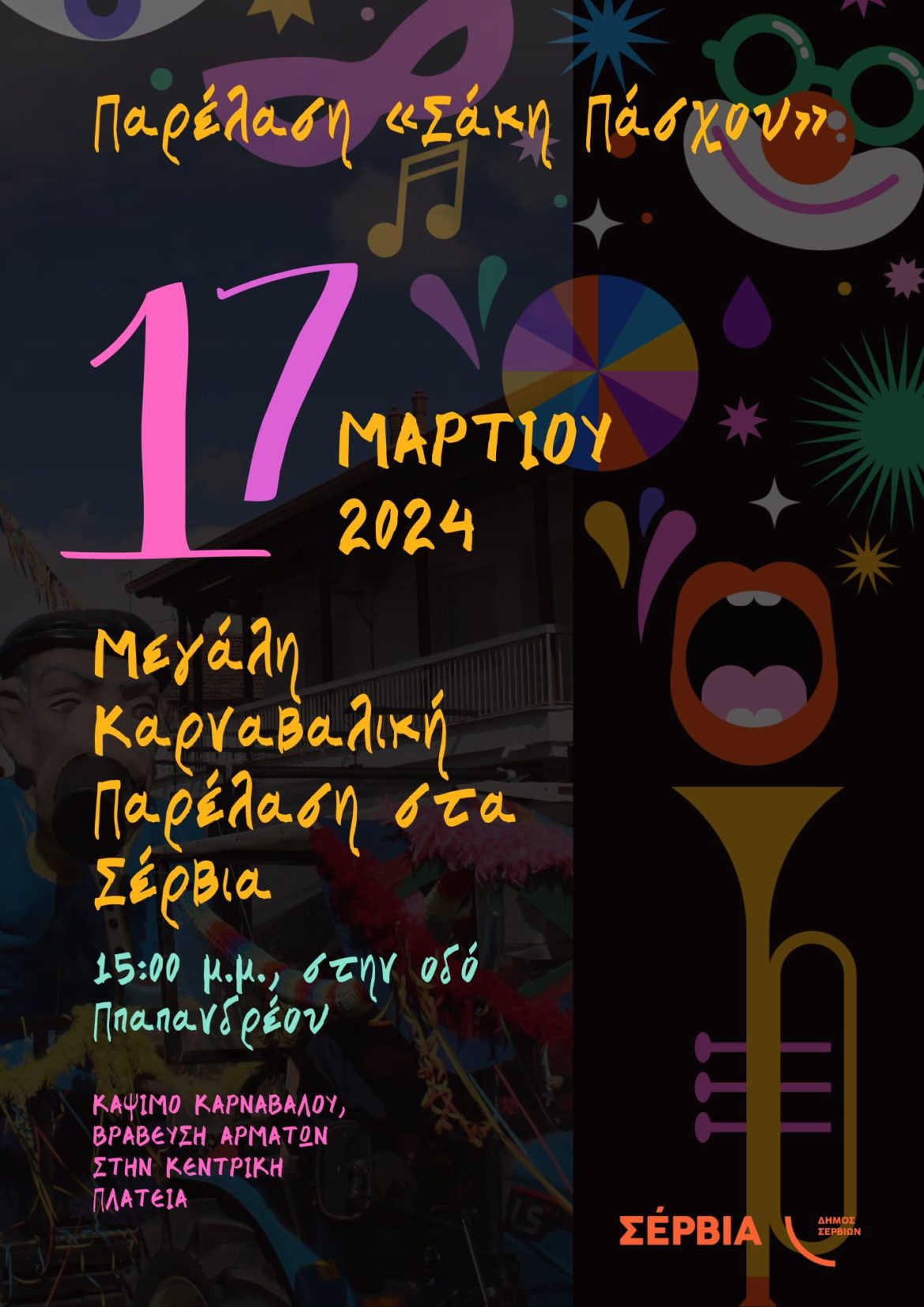Μεγάλη Καρναβαλική Παρέλαση στα Σέρβια την Κυριακή 17 Μαρτίου 2024